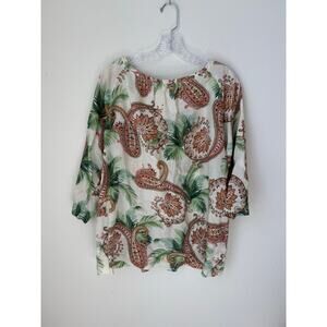 Tommy Bahama Women’s 100% Raime Paisley Print ¾ Sleeve Top Size XL