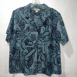 Tommy Bahama 100% Silk Black Tropical Blouse Button Up Side Slits Womens L