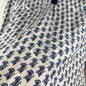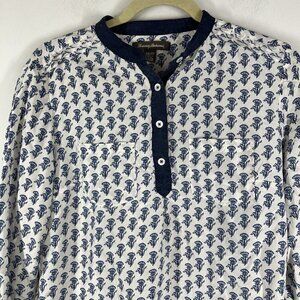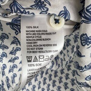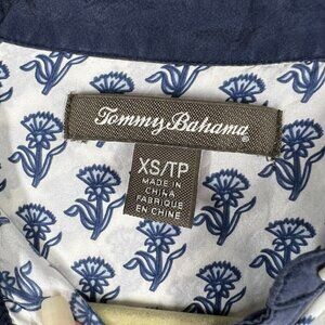 Tommy Bahama Women's 100% Silk White/Navy Floral Button Front Blouse Top Size XS