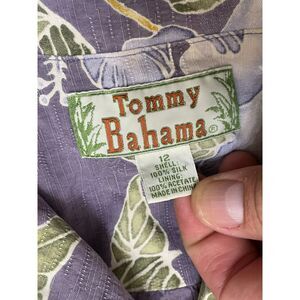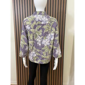 Tommy Bahama Women's 12 Purple Button-Up Silk Shirt Floral Aloha Tropical Beach
