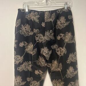 Tommy Bahama Womens Black 100% Silk Floral Embroidered Ankle Pant Side Zip Sz 6