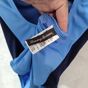 Tommy Bahama Women's Blue Colorblock V-Neck One Piece Swimsuit Size 6 Gold Back Clasp. Adjustable Straps. New Without Tags