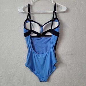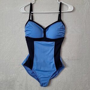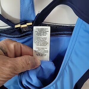 Tommy Bahama Women's Blue Colorblock V-Neck One Piece Swimsuit Size 4 Gold Clasp