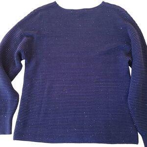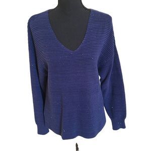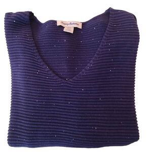 Tommy Bahama Womens Blue Sparkle Cotton Blend V Neck Sweater Small
