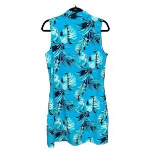 Tommy Bahama Womens Golf Dress Large Turquoise Leaf Sleeveless Tropical Print