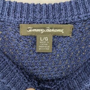 Tommy Bahama Women's L Open Knit Navy Blue Tunic Sweater Top, Boho Grunge Casual