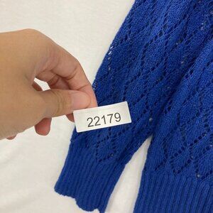 Tommy Bahama Women's Large Blue Crochet Open Knit Long Sleeve Sweater