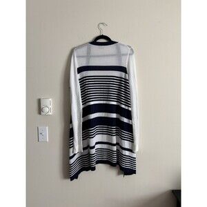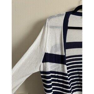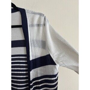Tommy Bahama Womens Large Open Front Knit Cardigan Navy White Stripe