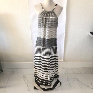 Tommy Bahama Women’s Linen Maxi Dress Size XS Gray White Stripped Beach Vacation