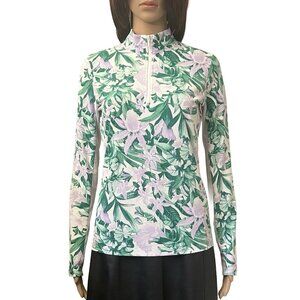 Tommy Bahama Women's Long Sleeve Top Jacket Size XS Green Pink Floral 1/4 Zip Mock Neck NWT