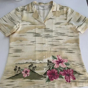 Tommy Bahama Womens M 100% Silk Hawaiian Shirt Floral Button Up Top Short Sleeve