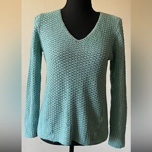 Tommy Bahama Women’s Medium Blue Knit Pullover Sweater V-Neck Cotton Blend