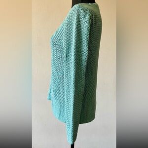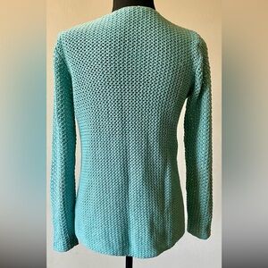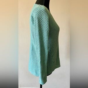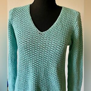 Stay stylish and cozy with this Tommy Bahama women’s pullover sweater in a soft seafoam blue. Features a beautifully textured open-knit design with a flattering V-neckline and long sleeves—perfect for layering on breezy days.