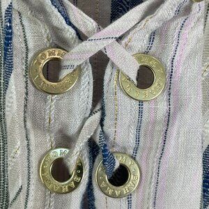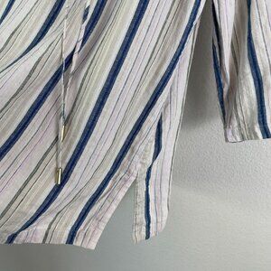 Tommy Bahama Womens Medium Striped Tunic Top Lace Up Neck Linen Blend Shirt