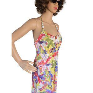 Tommy Bahama Women's Noli Blooms Halter Dress Lime Twist Size Medium Tropical