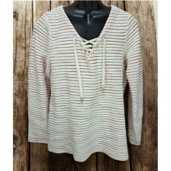 Tommy Bahama Womens Orange Striped Lace-Up Sweater Medium