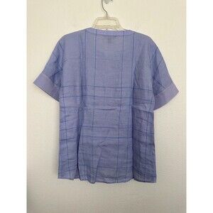 Tommy Bahama Women's Popover Linen Short Sleeve Blouse Blue Grid Size Small NEW.