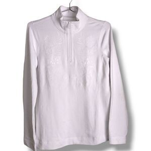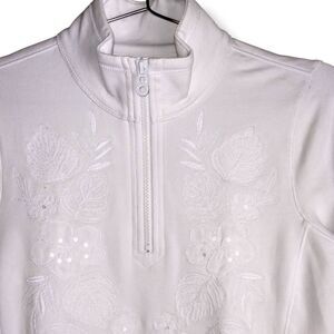 Tommy Bahama Women's Pullover 1/2 Zip Floral Embroidery White Size Small