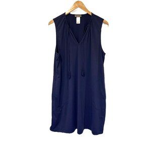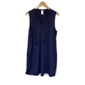 Keywords: Tommy Bahama, island, Vacation, Golf, Pickleball, Athleisure, navy blue dress, sleeveless tunic, casual dress, womens dress, pockets, tassel tie, v-neck, summer dress, boho dress, bohemian, beach cover up, Golf Dress