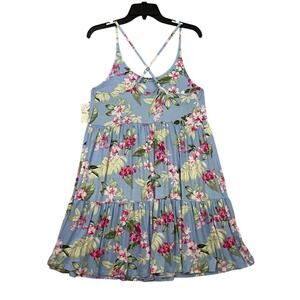 The Tommy Bahama Women's Short Night Gown in size Small is a beautiful blue floral sleep dress made from a blend of spandex and rayon. This sleeveless gown features a scoop neckline, pullover closure, and criss-cross back accents. Perfect for summer, spring, or fall, this lightweight and breathable gown is ideal for relaxing in style. Whether for a vacation or a comfortable night's sleep, this Tommy Bahama gown combines comfort and fashion effortlessly.