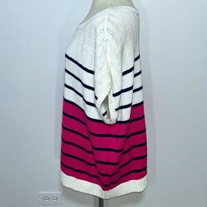 Tommy Bahama Women’s Short Sleeve Striped Pullover Crochet Sweater Size XL