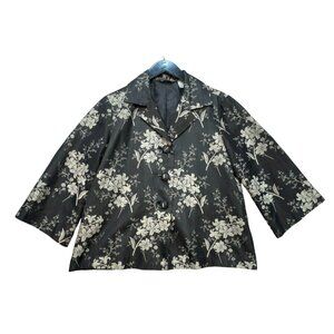 Tommy Bahama Womens Silk Blend Jacket Floral Print Black & Gray