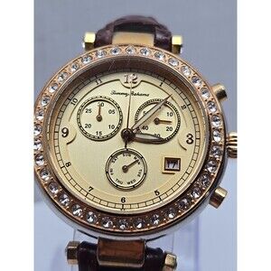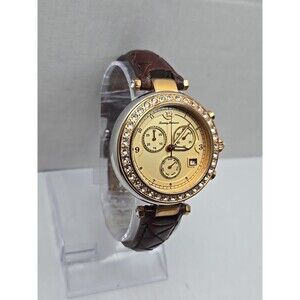 Tommy Bahama Womens Swiss Quartz Crystal Bezel Brown Leather Watch New Battery