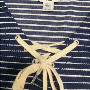 Tommy Bahama Women’s Tunic Sweater Lace up Navy Ivory Stripe Size Small EUC