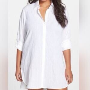 Tommy Bahama Women’s White Button-Up Tunic Shirt Dress