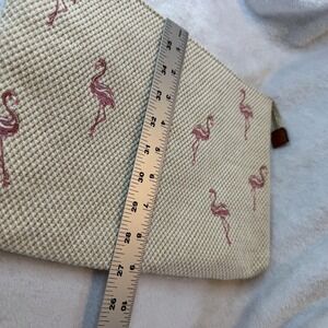 Tommy Bahama Wristlet Clutch Womens Beige Flamingo Embroidered Linen Zip Top