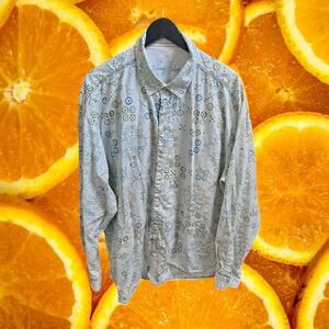 Keywords: Tommy Bahama shirt, button down shirt, long sleeve shirt, mens shirt, XL shirt, silk blend shirt, tropical print shirt, casual shirt, resort wear, menswear, designer shirt, patterned shirt, button up shirt
