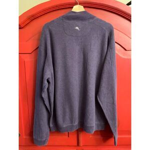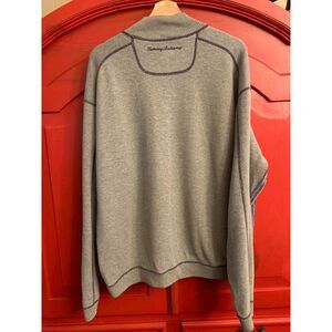 This is a great reversible sweatshirt that reverses from gray to purple. It has Tommy Bahama embroidered on one side and a Swordfish on the purple side. There isn't a spot on this. THE SIZE TAG IS REMOVED so please check measurements to be sure. The chest measured pit to pit when laid flat is 30" across The sleeves are 27" long. The total length is 28".-------------------------37