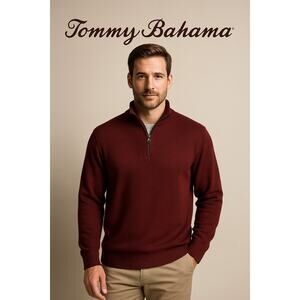 Tommy Bahama XL Maroon Quarter Zip Pullover Sweater Cotton Blend Casual Resort