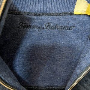 Tommy Bahama XL Quarter Zip Pullover Sweater Navy Blue Casual 100% Cotton