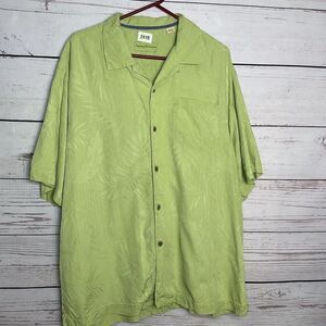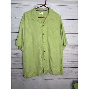 Tommy Bahama XL Silk Green Short Sleeve Hawaiian Shirt Orchid Floral Textured