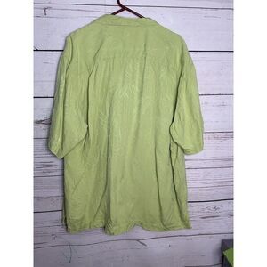 Add a touch of tropical vibe to your wardrobe with this Tommy Bahama green short sleeve shirt. This pre-owned shirt features a beautiful orchid floral pattern that will make you feel like you're on a vacation in the Bahamas. Made with 100% silk material, this shirt is smooth and comfortable to wear. It's perfect for casual occasions and can be paired with your favorite shorts or khakis. The shirt is in excellent condition and ready to be worn by its new owner.