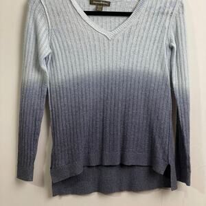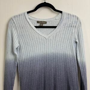 Tommy Bahama XS long sleeve sheer knit blouse ombré v-neckline merino wool gray