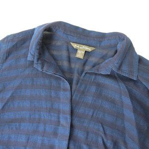Tommy Bahama XS navy blue shadow stripe button down light blouse top shirt