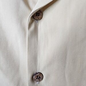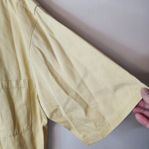 Tommy Bahama XXL 100% Silk Hawaiian Yellow Button Front Embroidered Back Short Sleeve Wooden Buttons
