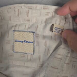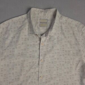 Tommy Bahama XXL Button Up Shirt Beige Brown Geometric Print Short Sleeve