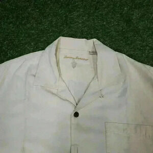 Tommy Bahama Yellow Silk Short Sleeve Button Up Shirt Men's L