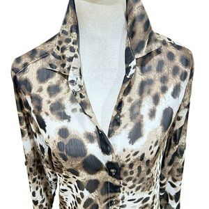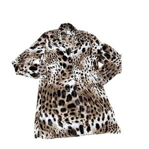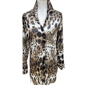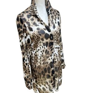 Tommy Bahama animal Print Button-Down sheer duster length Shirt size medium