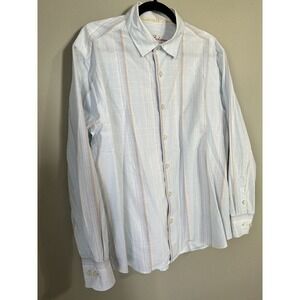 Tommy Bahama blue Stripe Button Collar Cotton Dress Shirt size large ***FLAW***