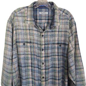 Tommy Bahama button down shirt Men's size XL blue plaid cotton