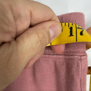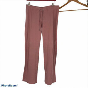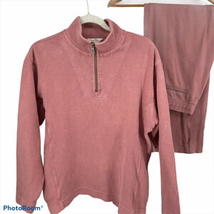 THis is a dusty rose jogger set. Super cozy lounger set from Tommy Bahama. The Top is a Medium. 1/2 zip with logo on back nape. The pit to pit measurement is about 24. The pants a very comfy and have elastic and a tie waist. They are a size large. The waist is 17 inches across and the inseam is about 29. They have a little wear at the hems but this set is in overall great shape. You will be cozy and look great! medium Large.