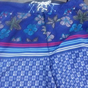 Baja Carnival Gardens-100% polyester-Machine wash cold tumble dry low-or basket the sun until dry-Full mesh liner-zip fly with lace up drop cord closure-partial elastic waist-Side seam pockets single back welt pocket with Velcro closure-9 to 11 inch inseam