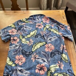 Tommy Bahama men’s blue Island zone, silk and cool poly max button down L