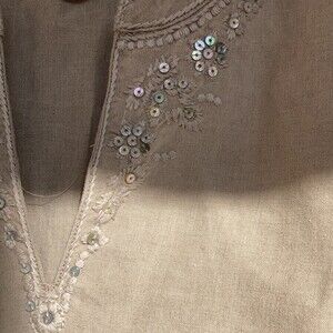 Tommy Bahama pure linen embroidered shirt in natural linen color. 29” long, 21” pit to pit
