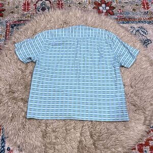 Great condition button down silk blend T-shirt by Tommy Bahama. Size is double XL. Nice striped print. Very comfortable.