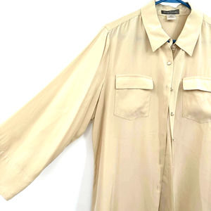 Tommy Bahama size Large 12/14 100% silk cream color button up blouse shirt top